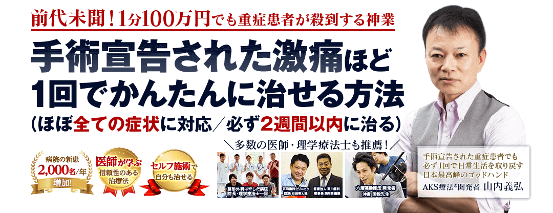 関節が原因なら85%の確率で痛みを改善できる『AKS療法®』が完成しました。
